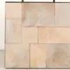 Resembles the appearance of a natural stone, although it is a concrete product. This stone is a tan color with buff tones through out. The sizing and thickness are consistent making installation easier.
