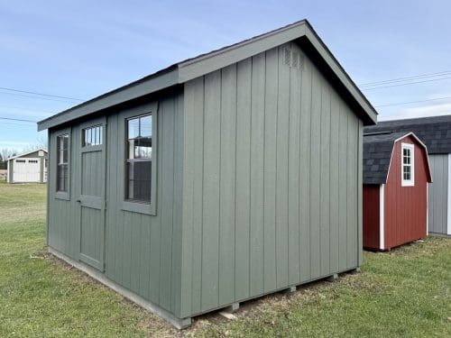 Features: (2) 24″ x 36″ Windows, 7′ Sidewalls, Pressure Treated Runners, Transom Windows, (2) Gable Vents, 6′ Double Door, 3′ Single Door, Diamond Plate Threshold, Painted Interior