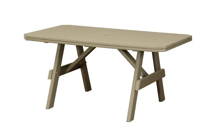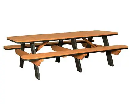 Picnic and patio tables allow everyone to enjoy the fresh air and cool breeze on a lazy Sunday afternoon. Crank up the grill and gather the family! Everyone’s always smiling at a backyard family picnic! Our outdoor furniture is constructed from environmentally responsible treated lumber or eco-friendly poly-wood material. Livingston Farm has a wide selection of picnic tables and patio tables for you and your family to enjoy. Whether your want a traditional rectangular picnic table with attached benches, a poly-wood dining table, or an octagonal picnic table, Livingston Farm has it all.