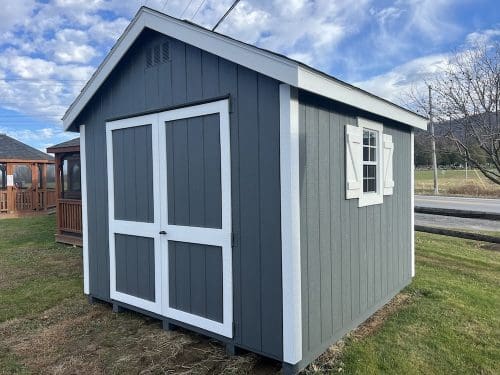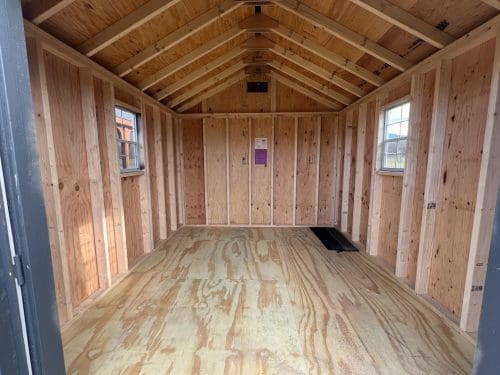 Features: (2) 18″ x 27″ windows, 7′ Sidewalls, Pressure Treated Floor, (2) Gable Vents, 6′ Double Door, and Ridge Vent