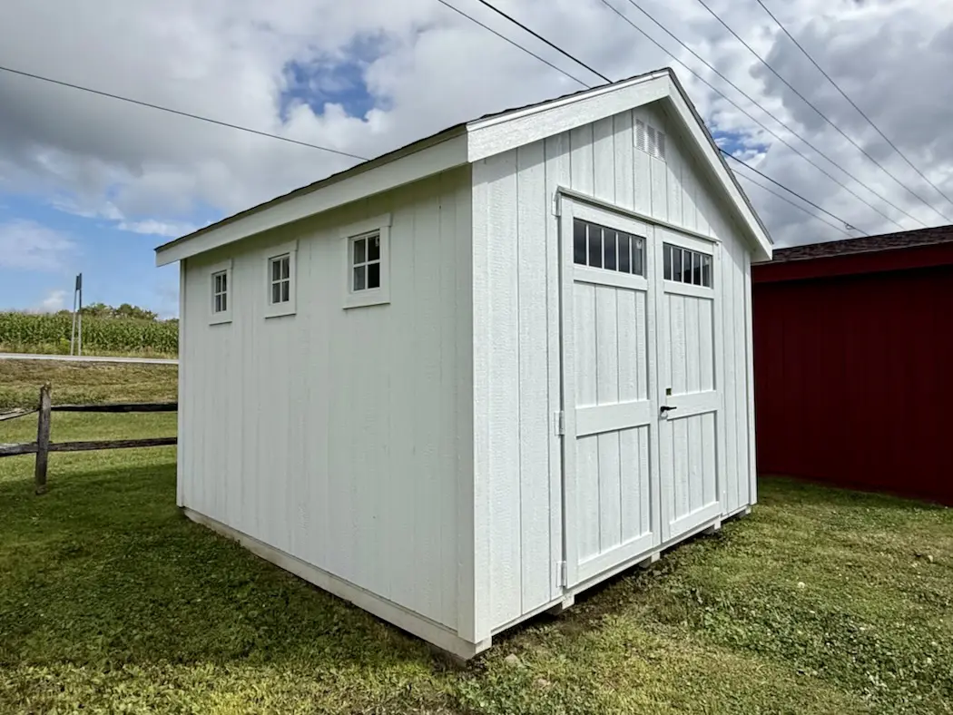 Features: (6) 12″ x 12″ Windows, 7′ Sidewalls, Pressure Treated Runners, (2) Gable Vents, 6′ Double Door