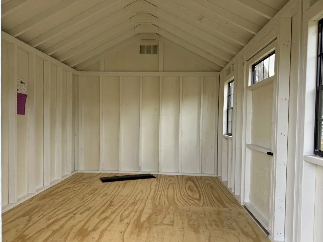 Features: (2) 24″ x 36″ Windows, 7′ Sidewalls, Pressure Treated Runners, Transom Windows, (2) Gable Vents, 6′ Double Door, 3′ Single Door, Diamond Plate Threshold, Painted Interior