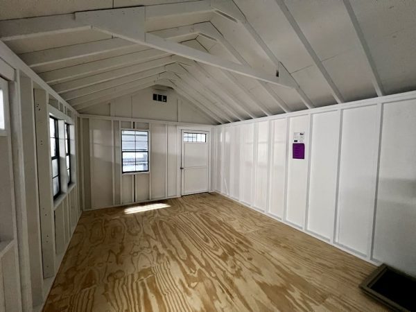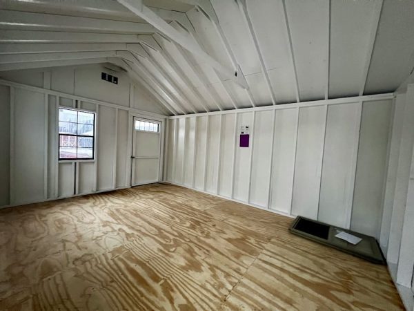 Features: 7′ Sidewalls, 3′ Single Door with Transom, 6′ Double Door with Black Transoms, (3) 24″ x 40″ Black Windows, Pressure Treated Runners, (2) Gable Vents, Diamond Plate Threshold, Paint Interior White