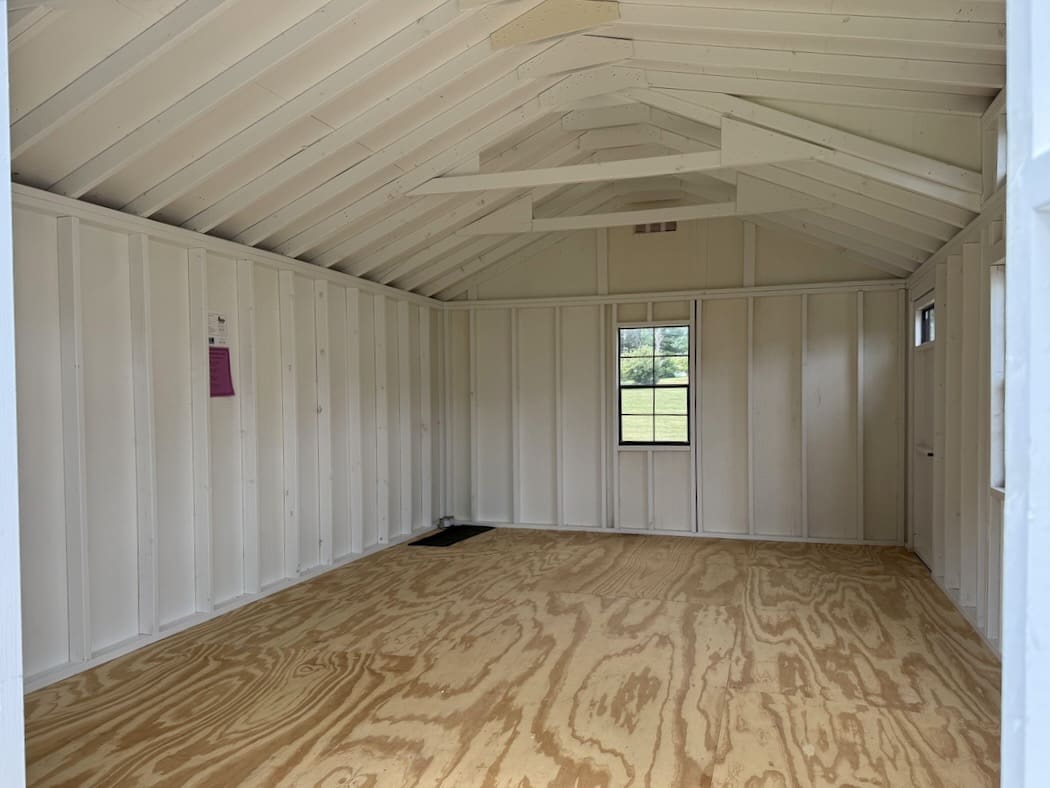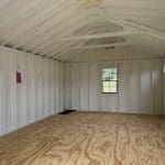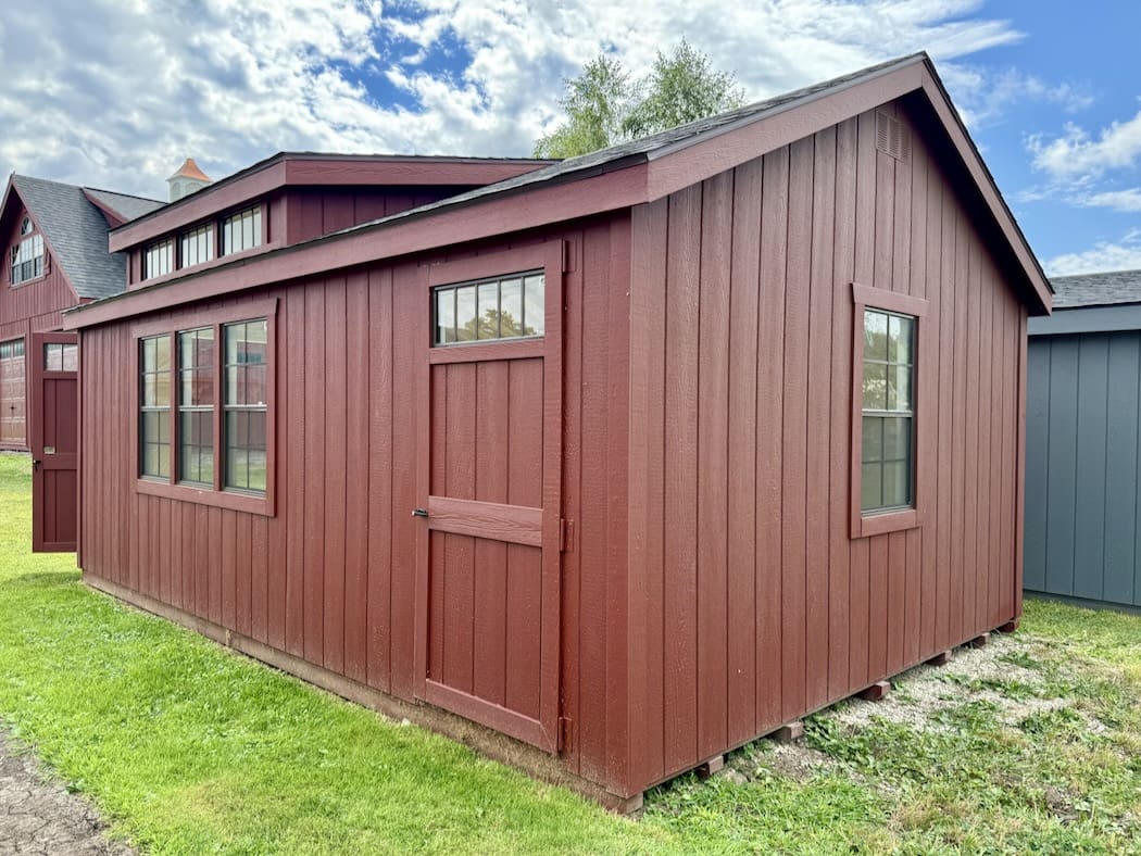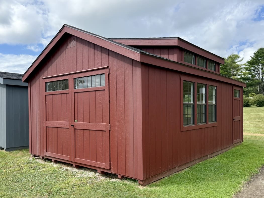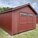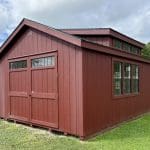 Features: (4) 24″ x 40″ windows, 7′ Sidewalls, Pressure Treated Floor Joists and Runners, 8′ Double Door With Transom Windows, 3′ Single Door with Transom Windows,Triple Transom Dormer, Diamond Plate Threshold, Paint Interior White, and Gable Vents