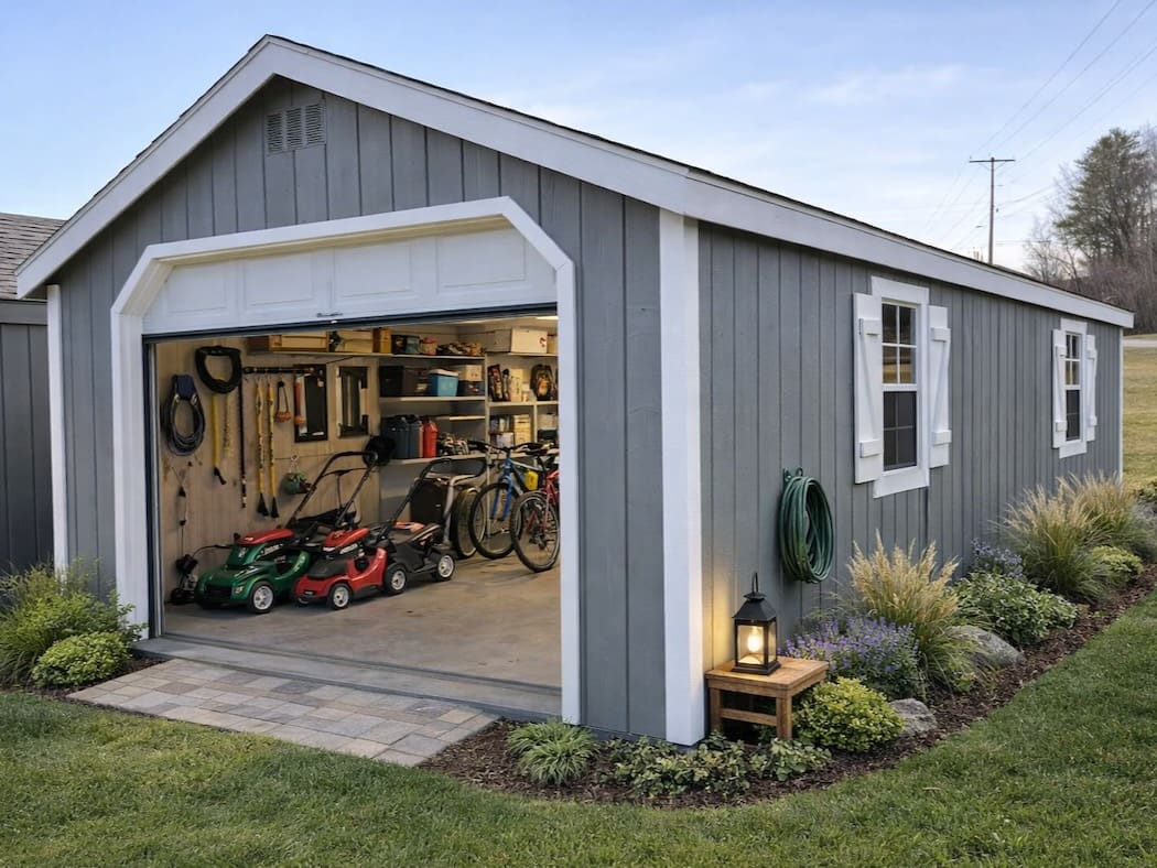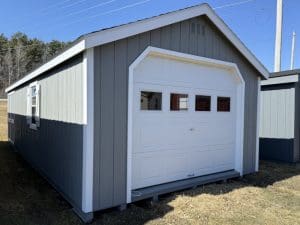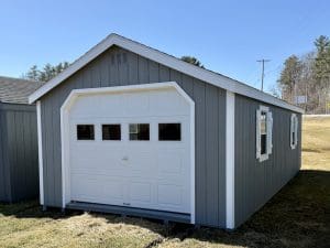 Features: (3) 24″ x 36″ windows, 7′ Sidewalls, Pressure Treated Floor, (2) Gable Vents, 9′ x 7′ Garage Door, 6′ Double Door, and Ridge Vent