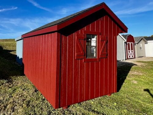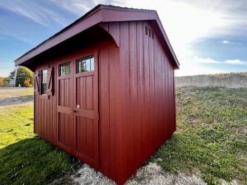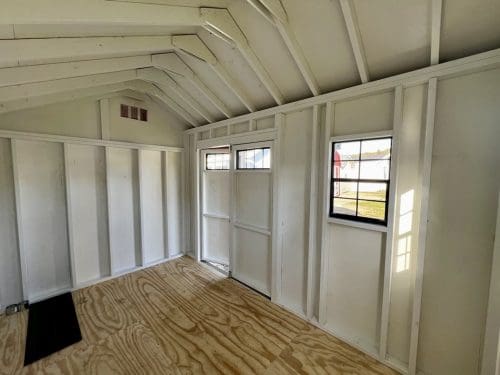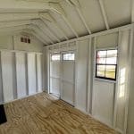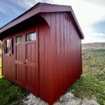Features: 5′ Double Door, (2) 18″ x 27″ Windows, Transom Windows, Diamond Plate Threshold,Pressure Treated Runners, Gable Vents