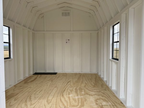 Features: (2) 24″ x 36″ windows, 6’6″ Sidewalls, Pressure Treated Runners, 6′ Double Door, Diamond Plate Threshold, and Gable Vents