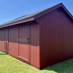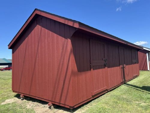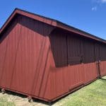 Features: (1) 18″ x 27″ window, (2) 10′ x 12′ Stalls, Two 4′ Dutch Doors, Plywood to Square, One 8′ x 12′ Tack/Feed Room with Pressure Treated Floor, 3′ Single Door, Gable Vents, and Ridge Vent