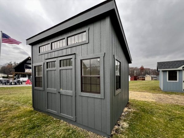 Features: (4) 24″ x 36″ Windows, 5′ Double Door With Sash Windows, Interior Painted White, Diamond Plate Threshold, Transom Windows, Pressure Treated Runners and Floor Joists and Soffit Vents