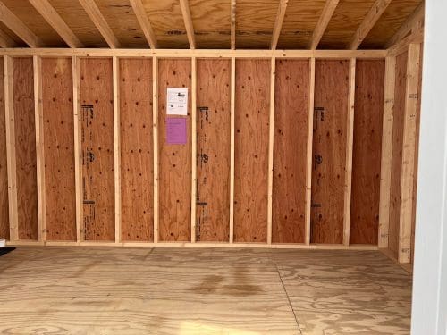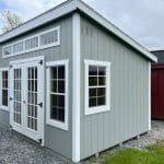 Features: (2) 24″ x 36″ windows, (2) 24 x 48″, 6′ Fiberglass Doors with Full Glass Inserts, Pressure Treated Floor, Transom Windows, and (2) Gable Vents