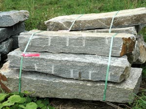 This stone includes an appealing mix of gray-blue, caramel, amber, blush, pale green, and deep shades of brown. This stone combines fine-grained and weathered granite. Sizes: 16″-60″ x 5″-8″
