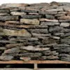 Maple Creek wall stone consists mostly of darker shades of grey and brown with rounded edges and moss and lichens.