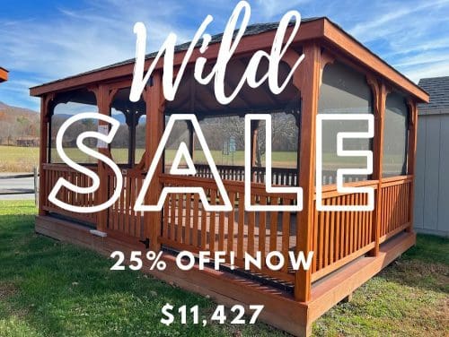 Features: Pressure Treated Construction, Cedar Stain, Black Architectural Shingles, Floor Screen, Full Screen Kit