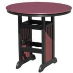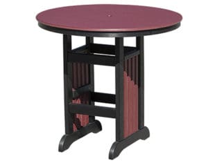 The pub table fits well with the pub and balcony style chairs. 44″ diameter x 39″ high