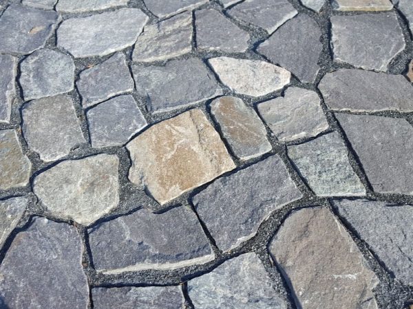 A blend of Corinthian and American granite, this is a medium to coarse-grained weathered granite featuring blues with a mixture of green, black, pink, brown, burgundy and white. 1″-3″ x 12″-24″. 115-150 sq ft, 3,300-4,400lbs per pallet.