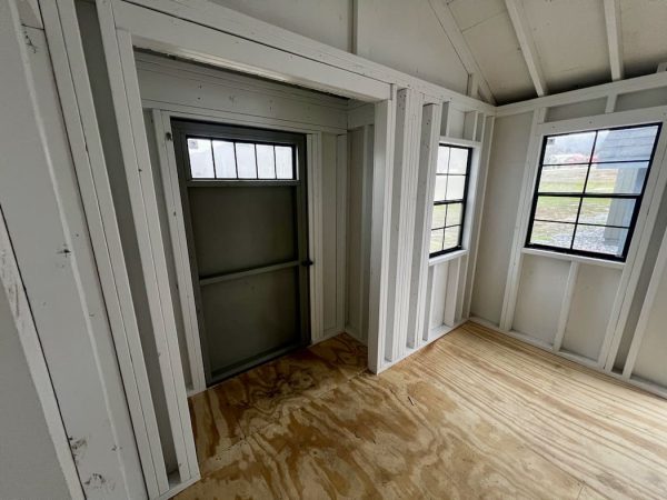 Features: 3′ Single Door, 6′ Double Doors, 7′ Sidewalls, Pressure Treated Runners, Pressure Treated Floor Joists, Transom Windows, (3) 24″ x 36″ Windows, Bump Out Peak Dormer, Painted Interior, Diamond Plate Threshold, (2) Victorian Vents